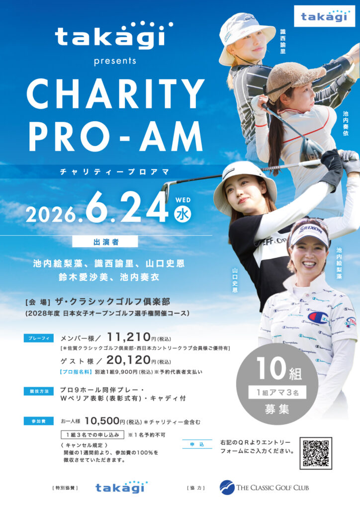 毎年好評の「takagiチャリティープロアマ」が今年もザ・クラシックゴルフ倶楽部で開催されます。
