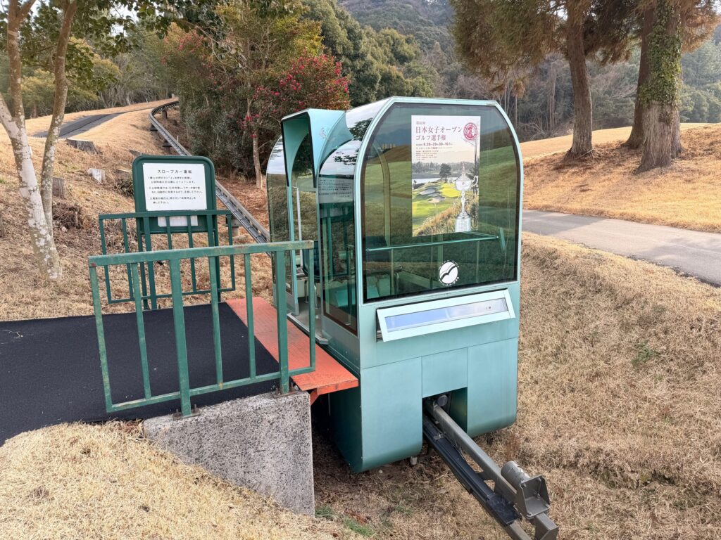 お客様を練習場へ牽引する下図スロープカーの